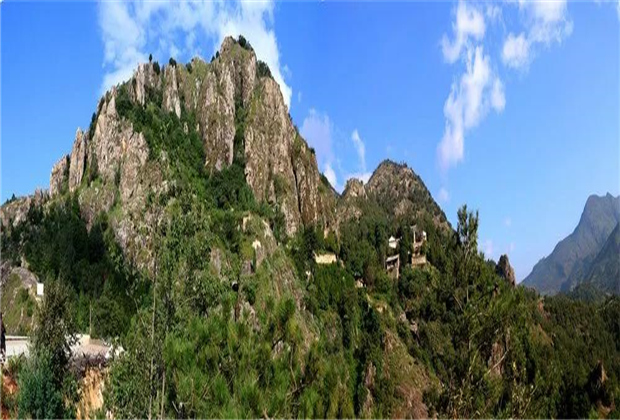 位于縣城西北十里的九鼎山,因九峰突兀,山形獨(dú)特,望之簇如一朵青蓮,高崖雄奇,常有白云縈繞而得名。山上的九座山峰名字也很好聽,如“鳳鳴”“攬霞”“招鶴”等,充滿了色彩繽紛的迷幻和神奇的傳說。