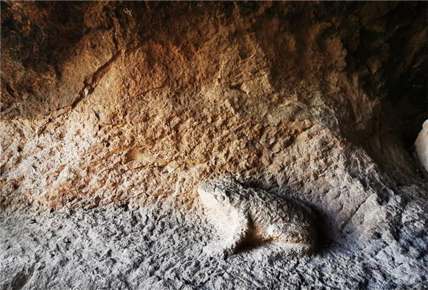 崖壁上還有一些從高處往下鑿開的深淺不一的石溝,每一條石溝的低端會(huì)有一個(gè)石槽。我猜測(cè),估計(jì)是當(dāng)年建造廟宇的工匠的奇思妙想:在崖壁上鑿開一條水溝,既可以避免下雨時(shí)造成建筑浸水,還可以在石槽里收集難得的雨水,以備用時(shí)所需。工匠們的精心設(shè)計(jì)應(yīng)該在很長(zhǎng)時(shí)間里保住了廟宇的安全,卻無法預(yù)測(cè)后人因各種原因沒有保護(hù)好這巧妙的“懸空寺”,實(shí)在是九鼎山大大的遺憾。