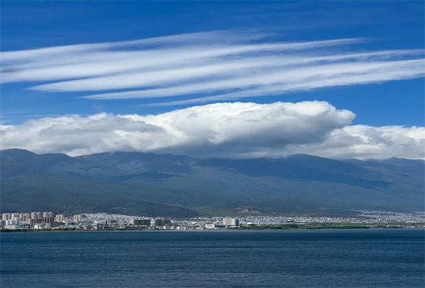 另一邊是碧波蕩漾的洱海
