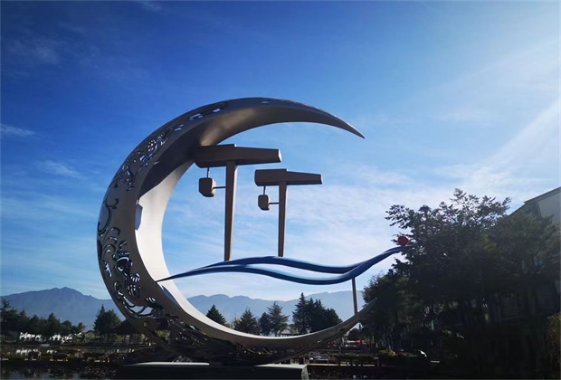 橋上屹立著一個大型“龍鳳手鐲”雕塑