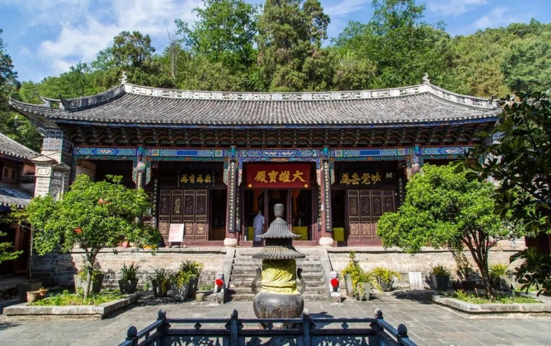 無為寺的歷史可以追溯至唐貞元九年,由西天竺僧贊陀崛多創(chuàng)立。這位來自天竺的僧侶,在南詔時期結(jié)茅修行于蘭峰下的閣老崖,成為觀音菩薩因地修行之所。贊陀因其深厚的道行,迅速得到南詔國王羅鳳的崇敬,并被冊封為國師。鳳歿后,弟子異牟訓于貞觀九年擴建了寺廟,為供養(yǎng)贊陀修行弘法。這是無為寺建立的源頭,其名字則來自觀音菩薩的一偈:“有為無為,有岸無岸,身居龍淵,心達彼岸”。大理國時期,無為寺威風不減當年,成為國王聽經(jīng)聞法、王室子弟習文練舞的圣地。大理國的22位帝王中有10位在此出家,而其他15位皇族子弟也加入了無為寺。在《天龍八部》中,歷史上出家于無為寺的知名人物段譽成為傳說,進一步增添了這座寺廟的神秘色彩。