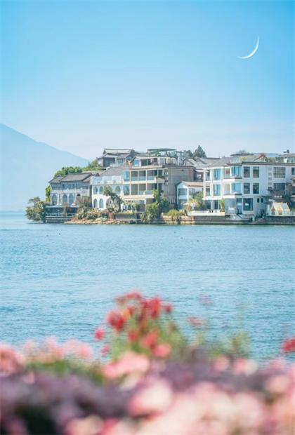 “理想邦”位于大理海東鎮(zhèn),這里依山而建,面朝洱海,景色秀麗。其建筑風(fēng)格融合了圣托里尼的浪漫與大理的風(fēng)情,以白色、藍(lán)色和裸露的火山石等元素為主,與周圍自然環(huán)境渾然一體,讓人仿佛置身于童話世界。從高處俯瞰,洱海的美景盡收眼底,水天一色,令人心曠神怡。無論是拍照打卡還是放松身心,理想邦都是一個絕佳的選擇。