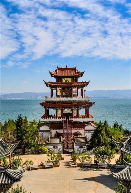 在大理這片東方瑞士的土地上,有一處隱藏在洱海東部的小島,如同一顆明珠鑲嵌在碧波之中,它就是洱海小普陀。這個小小的石灰?guī)r島,如同一首古老的詩歌,訴說著大理的歷史、信仰和自然之美。當(dāng)船只緩緩駛向小普陀,好像越了時光的長河,來到一個充滿神秘和傳奇的世界。小島如一顆微小的心臟,跳動著洱海的生命之源。碧綠的海水在岸邊輕輕拍打,撫慰著疲憊的心靈。遠(yuǎn)處的蒼山若隱若現(xiàn),如同巨龍騰飛,它是洱海的守護(hù)神,注視著這片湛藍(lán)的水域。小普陀島高出水面十來米,巖石如雕刻般奇妙,儼然是大自然的杰作。島上的樓閣建于明代,兩層歇山式的建筑在藍(lán)天白云的映襯下顯得格外莊重。第一層塑有如來,莊嚴(yán)肅穆;第二層塑有觀音,慈悲仁愛。這座小巧玲瓏的樓閣,神霧繚繞,如同仙境般令人陶醉。