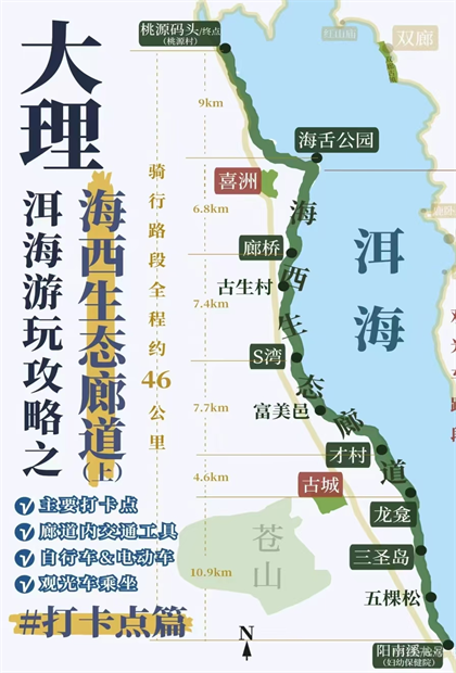 喜洲古鎮(zhèn)不在生態(tài)廊道內(nèi),從海舌到喜洲共享車不能用