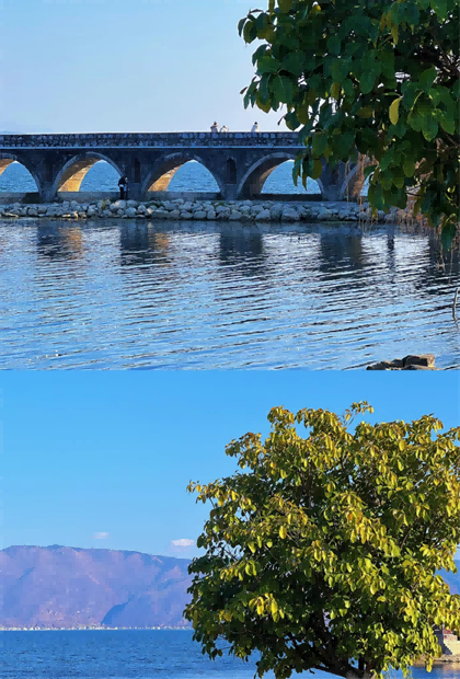 “廊橋”坐落于大理市灣橋鎮(zhèn)向陽溪村的洱海之濱是一座獨特的水渠其造型如同拱橋一般延伸進碧藍的洱海之中在歷史的歲月里它曾是灣橋鎮(zhèn)重要的灌溉抽水渠為這片土地帶來了勃勃生機如今它已不再承擔(dān)抽水灌溉的功能成為了一個歷史的見證者“廊橋”最引人注目的是其獨特的構(gòu)造:十幾個半圓形橋洞如拱橋般連在一起一直延伸至洱海深處無論是站在橋上、橋下還是透過橋洞望去都能看到不一樣的風(fēng)景。