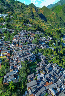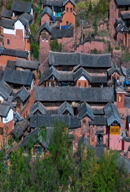 諾鄧古村歷史悠久,保留著大量明清兩朝的建筑,山頂?shù)挠窕书w,始建于明嘉靖年間,是現(xiàn)存罕見(jiàn)的三層閣樓式古建筑。大殿頂?shù)亩诵撬迗D,更為諾鄧一絕。