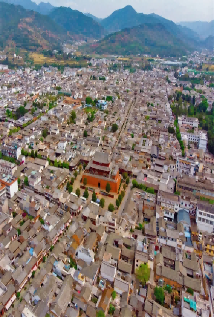巍山古城:巍山古城內(nèi)街道以拱城樓為中心,呈標(biāo)準(zhǔn)的井字結(jié)構(gòu)建設(shè),共有25條街道,18條巷,全長14千米,城內(nèi)房屋基本保持了中式結(jié)構(gòu),南、北主軸線兩側(cè)的房屋則完整地保存了明、清時(shí)代的建筑式樣和風(fēng)格。古城內(nèi)的民居多數(shù)是院落式的,保持了大理白族的“三坊一照壁”“四合五天井”土木結(jié)構(gòu)的特色,北門外的二條街道是主要居住區(qū),臨街為鋪面及大門,寬度一般為67米,后面為住宅。巍山古城筑有城墻,東西南北四個(gè)城門,城中心建星拱樓,古城形方如印。古城里建有文廟和古城博物館,集中展示了“文獻(xiàn)民邦”和“民俗文化”的完美結(jié)合。在博物館以南,有古廟等覺寺。這座寺廟的大部分在清咸豐年間被毀,現(xiàn)僅存寺院外的雙塔和寺院內(nèi)的太陽宮,后者始建于明永樂年,建筑單檐歇山頂,面闊五間,四周設(shè)廊,檐下施重昂斗拱,粗大古樸。