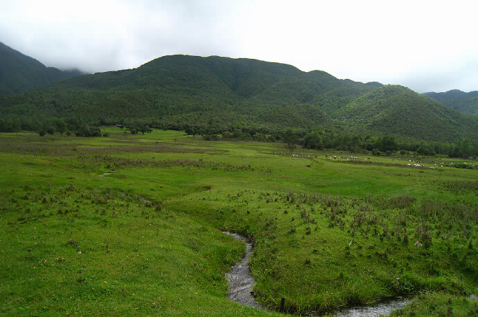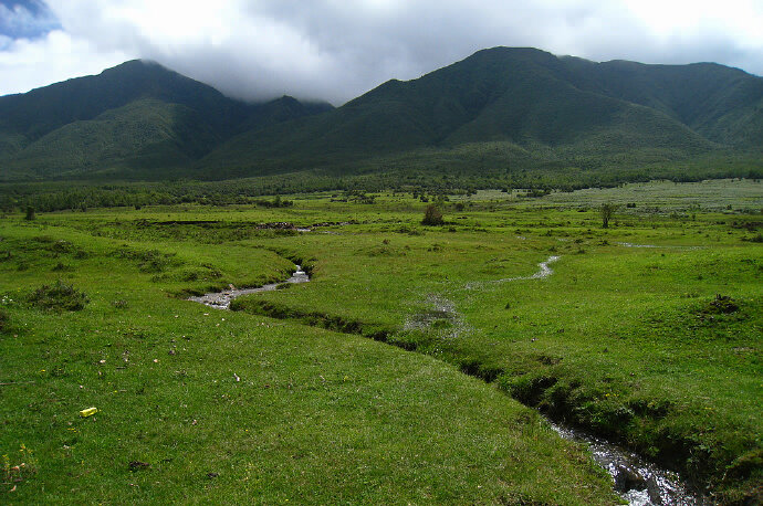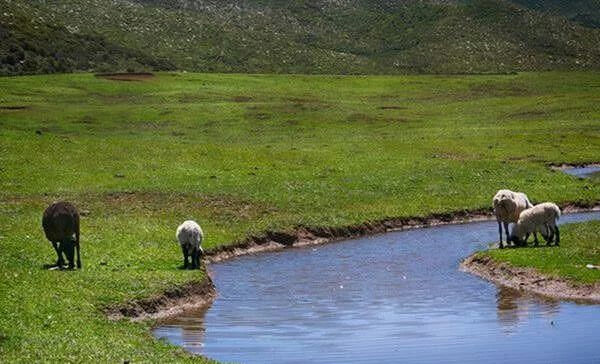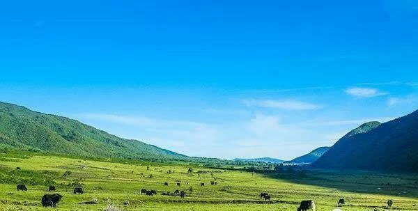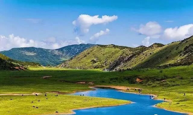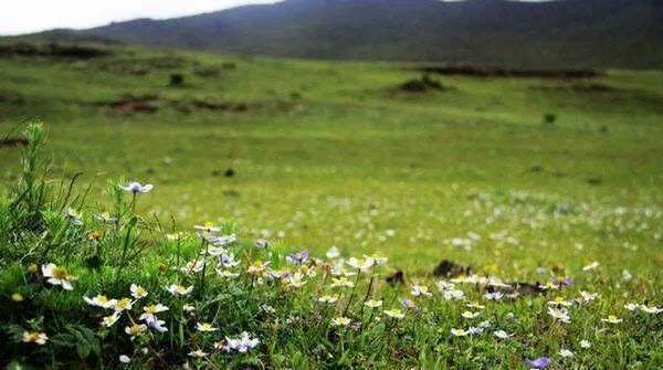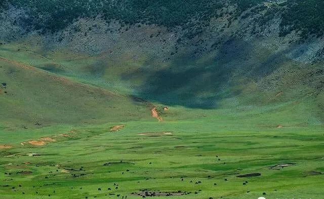 無數(shù)條小溪從山脈里泌出,又在草甸上蜿蜓而過……讓人不禁懷疑,總感覺應(yīng)該是在千里之外的蒙古大草原。