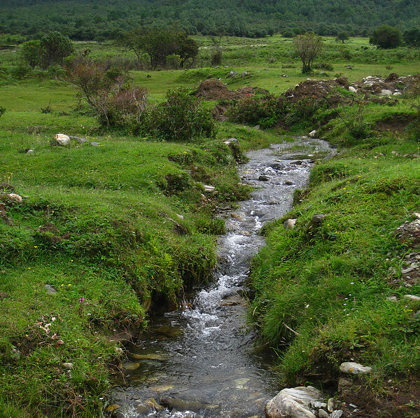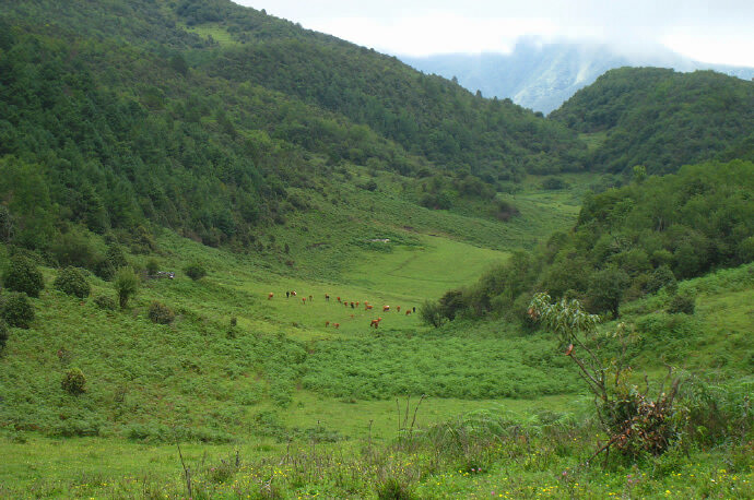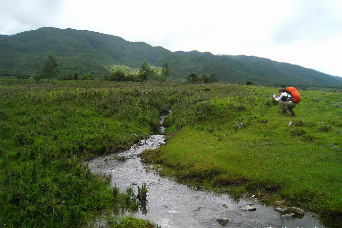 第二天約爬2小時山至小花甸埡口,之后徒步小花甸約一個小時左右,隨后開始水路下山,出發(fā)前一定要問場長方向,方向錯了就走到洱源縣的鳳羽去了。