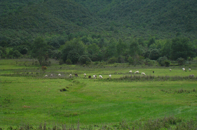 自由散漫地行走在綠色無邊的壩子里,牧草肥美,景色宜人。空處絕人煙,只有靜,只有閑。