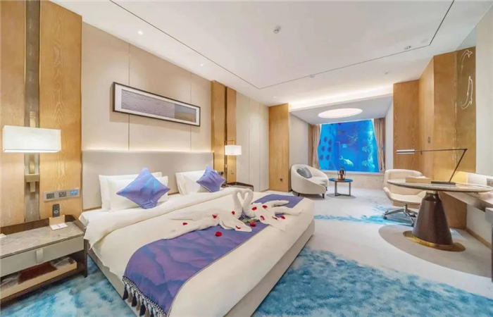 酒店位于云南省大理白族自治州海東大理海洋城,背靠大理首座海洋主題公園——大理海洋世界。酒店有23間海底景觀房,一、二、三層客房直接面向11000噸(水深11.5米)魚展池的水下景觀,四層可俯視壯觀的鯊魚池水面,可零距離觀賞千姿百態(tài)的遠洋奇觀,可體驗鯊魚池潛水、潛水培訓(xùn)、水下求婚及水下婚禮等特色服務(wù)項目。