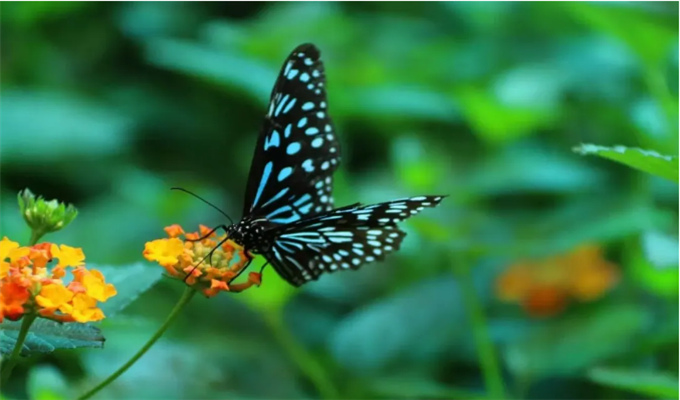 次日,鄉(xiāng)親們在潭水中沒有打撈到兩人的遺體,卻看到潭底飛出兩只鮮艷美麗的蝴蝶。蝴蝶形影不離,翩躚起舞,引得無數(shù)色彩斑斕的蝴蝶從四面八方匯聚而來。