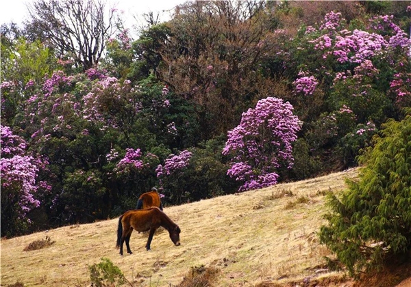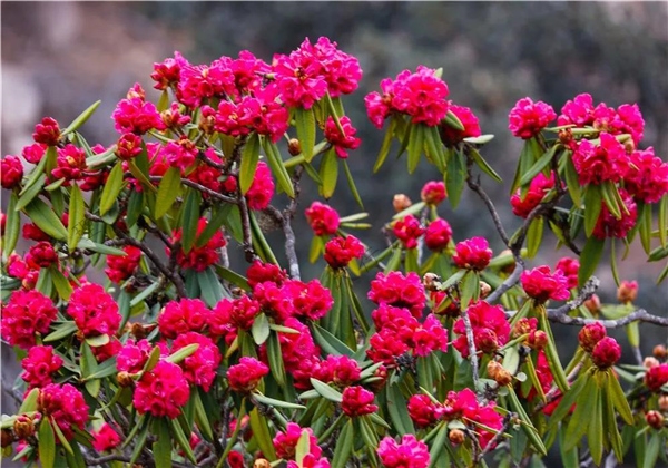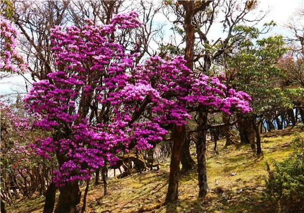 這里的杜鵑種類繁多、千姿百態(tài),有大紅、絳紅、淺黃、純白、粉紫等各種顏色,花期將一直持續(xù)至6月份。