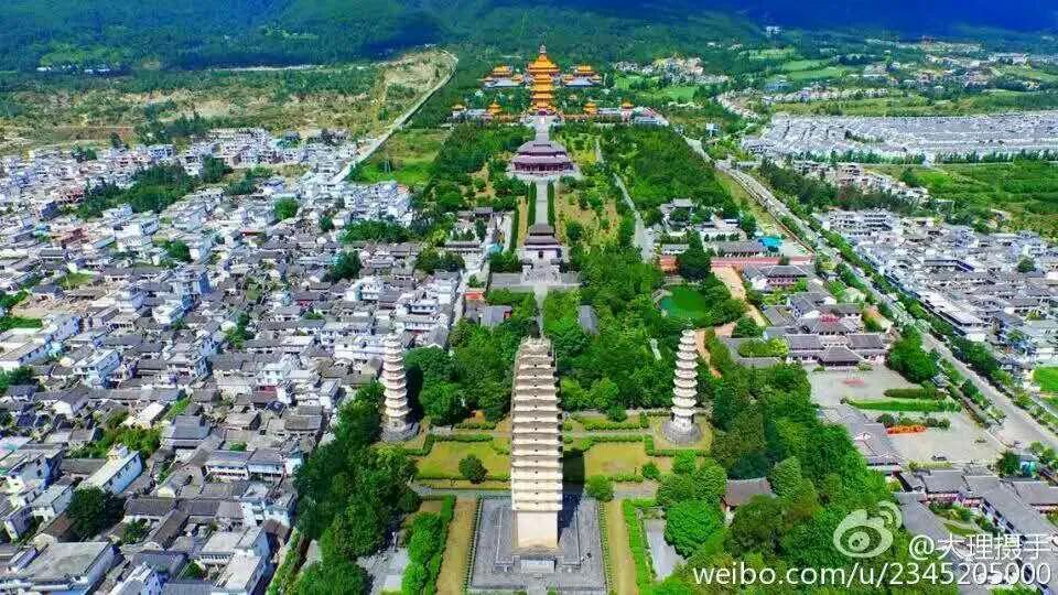 從崇圣寺正面的高空俯瞰整個(gè)崇圣寺三塔,你會(huì)發(fā)現(xiàn)令人震撼的現(xiàn)象:崇圣寺三塔的建筑都呈現(xiàn)對稱分布!