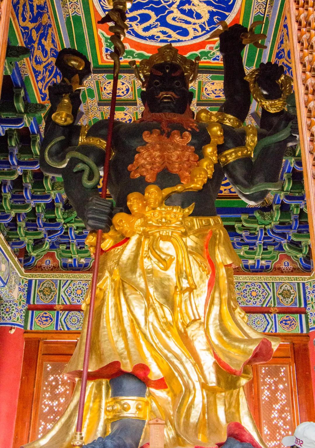 大黑天神是白族神話中舍己為民的天神。相傳,大黑天神原本不是這樣的面貌,他長相英俊,可是為了拯救大理的蒼生,把即將散布到大理的瘟疫吞下,因此全身發(fā)黑。大理人為了感謝他,將他奉為白族的“本主”,并把他的塑像放置在崇圣寺中,世代供奉。