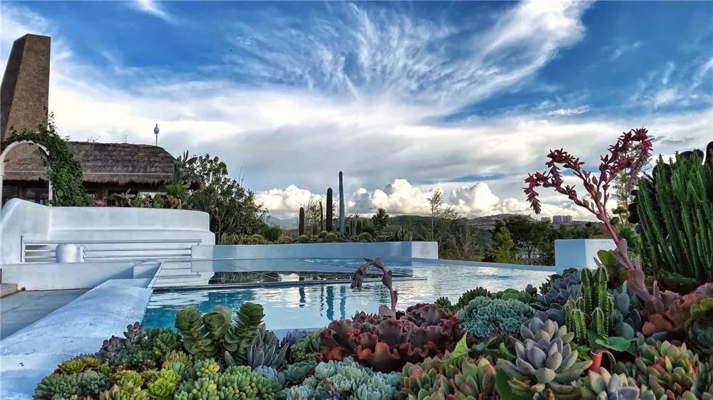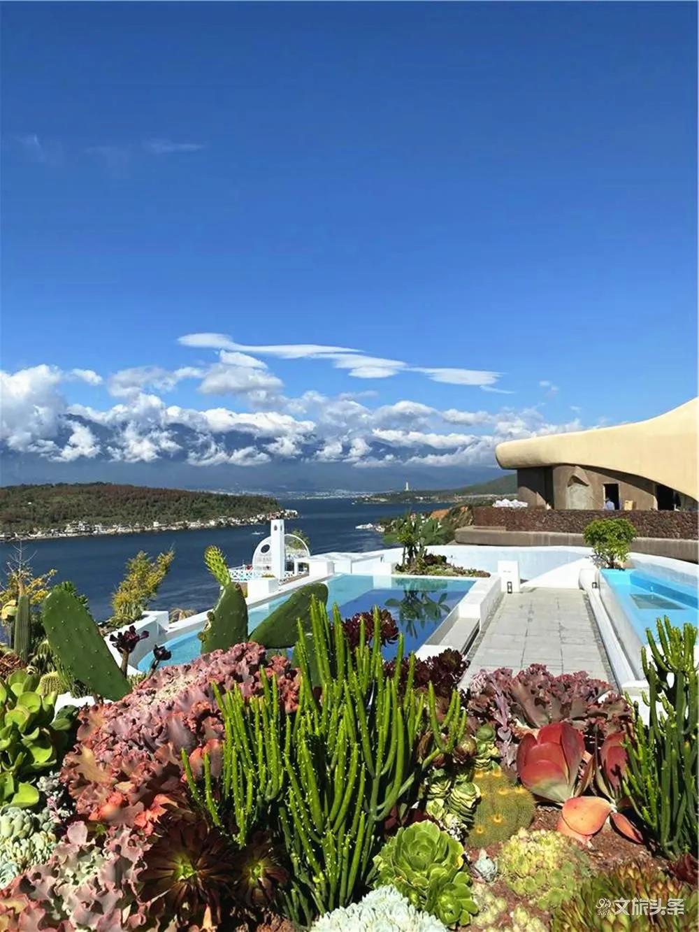 白色浪漫、純凈和夢幻,大地色自然、深邃,雕琢出建筑的厚重感與文化意蘊。裸露的火山石、質(zhì)樸的茅草頂,搭配著自由延伸的臺階和景墻,在廣闊的藍(lán)天背景下,與蒼山洱海融為一體,仿佛一座童話王國。